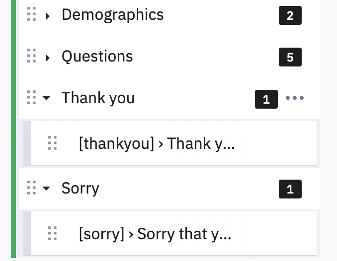 To demonstrate how this works, we will make people who do not consent skip past the questions to see a Sorry message, and add Thank you people for people who did consent and who have done the survey.
