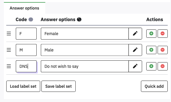 Should you make this question Mandatory? Forcing a response can avoid getting missing data if a respondent misses a question by mistake, but it can also annoy people who don’t want to answer one item but might do the rest of your survey, so think carefully about how essential it is to obtain the data you are asking for and use it sparingly. In this case, leave Mandatory at Off (in analysis, you can recode missing answers as ‘Do not wish to say’)