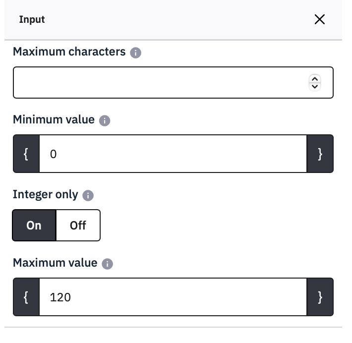 Although choosing Numerical input prevents your participants from entering text, they could still enter nonsense such as a negative number or 9999. You can prevent this by using setting maximum and minimum values, and forcing the number to be an integer.