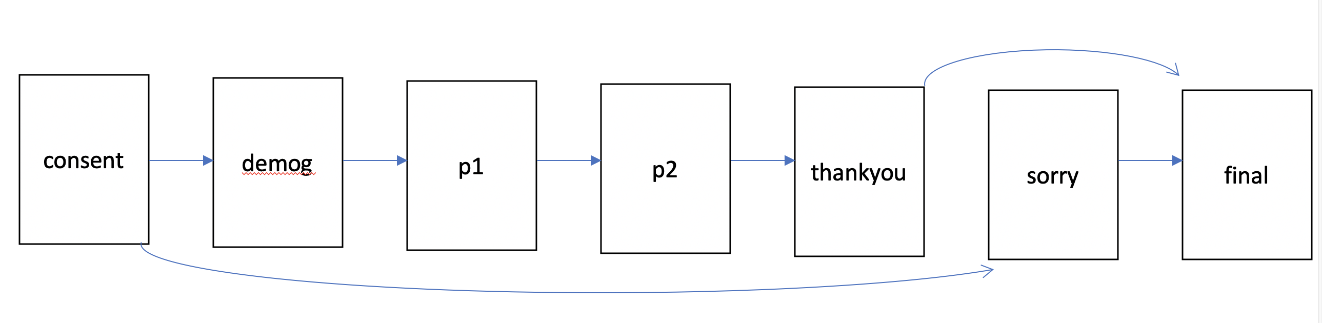 If the respondent does not give consent, then they should be thanked politely, but they should not receive the same debrief. In Limesurvey, you can make questions only appear if an early question has been answered in a certain way – so only if they have given consent, for example. Rather than jumping over questions, they are just not shown.