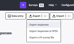 Clicking this brings up a screen with information about how many responses you have and some options to display them on-screen. However, you simply need to click the Export button at the top of the screen, and choose Export responses.