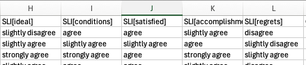 It is also advisable to export the full answer text, rather than Answer codes. Answer Codes turns the data into whatever you had entered in the Codes field of the question or numerical values if you had left them blank, as here: